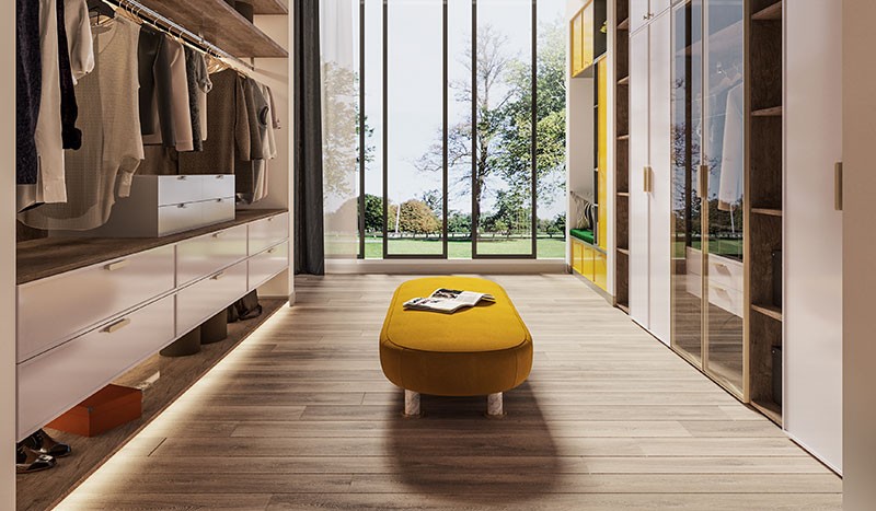 衣帽間會是她們最想要的空間,對收納空間比較在意,特別是整理和分類的要求;她們會把衣服分成春夏秋冬的不同收納;對包包和首飾的收納也非常細致;對收納功能及智能五金的需求充滿熱情,滅菌和除味,消毒設備是剛需購買,對柜類燈光比較有吸引力;衣帽間里往往需要一個漂亮的化妝臺,一面大落地鏡。雙11是她們一年中最重要的節日,這一天往往會給她們的衣帽間增添很多驚喜。她們會兩天換一套不同的款式去上班;這也讓她們更喜歡有調性的家居色彩,比如:淺灰,淺綠灰,灰藍,果綠色,也喜歡面麻質感的沙發面料及窗簾。